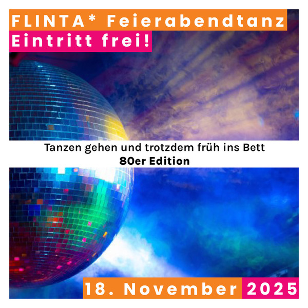 Herzlich willkommen sind Frauen, Lesben, inter* Personen, nicht-binäre Personen, trans Frauen, trans Männer, agender Personen. Wir werden vor Ort auf unsere Einlassregeln hinweisen. Wir vertrauen auf eure Selbstdefinition und bitte alle Besucher*innen, dies auch zu tun und keine vermeintlichen Geschlechtszugehörigkeiten zuzuschreiben. Es wird ein kleines, ansprechbares Awareness-Team geben. Wenn du eine cis Mann bist, kannst du an diesem Abend nicht teilzunehmen.